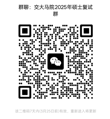 4.进入复试的考生,请扫描下方微信群二维码,尽快加入我院2025年硕士生复试群,并及时关注我校研招网及学院官网发布的有关通知。