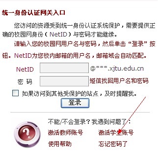 (3)如果从未申请过交大邮箱则点击“激活学生账号”,输入个人相关信息则可激活交大学生邮箱: