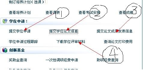 研究生院网页//202.117.3.68:8083/gs/jsp/index.do?method=list(点击红色箭头所指处进行学位申请相关工作