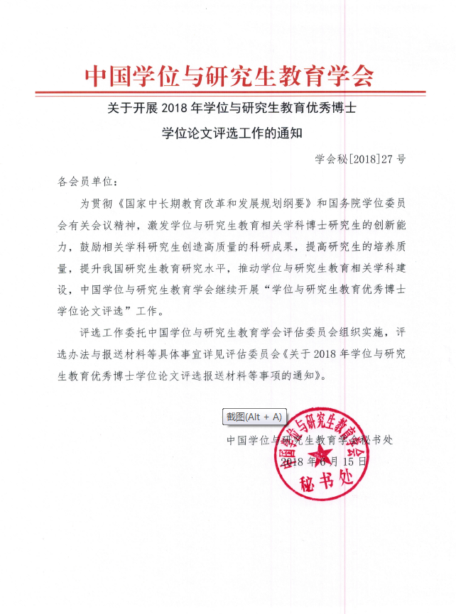 关于开展2018年学位与研究生教育优秀博士学位论文评选工作的通知