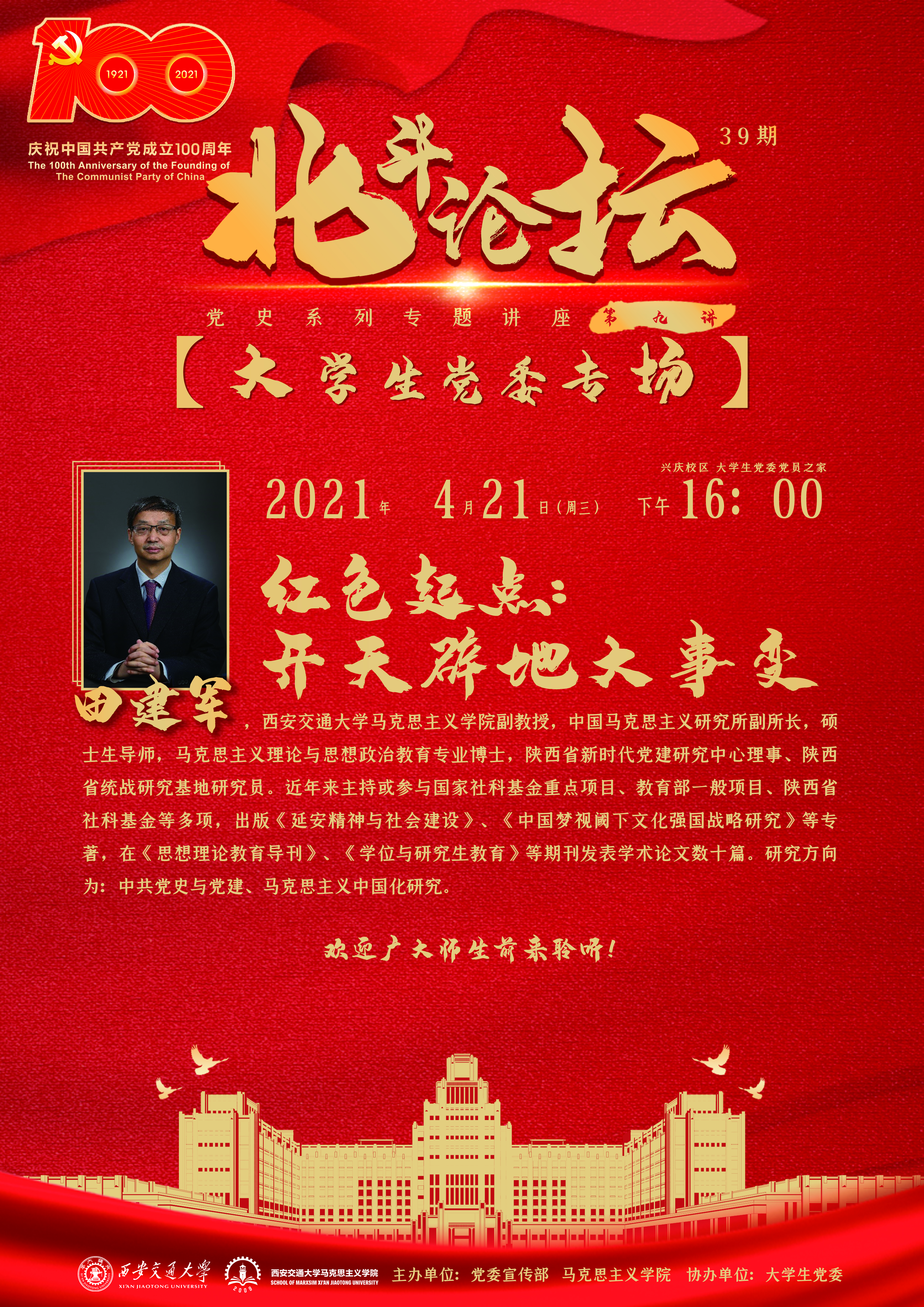 【讲座预告】北斗论坛39期----党史系列专题讲座第九讲【大学生党委专场】