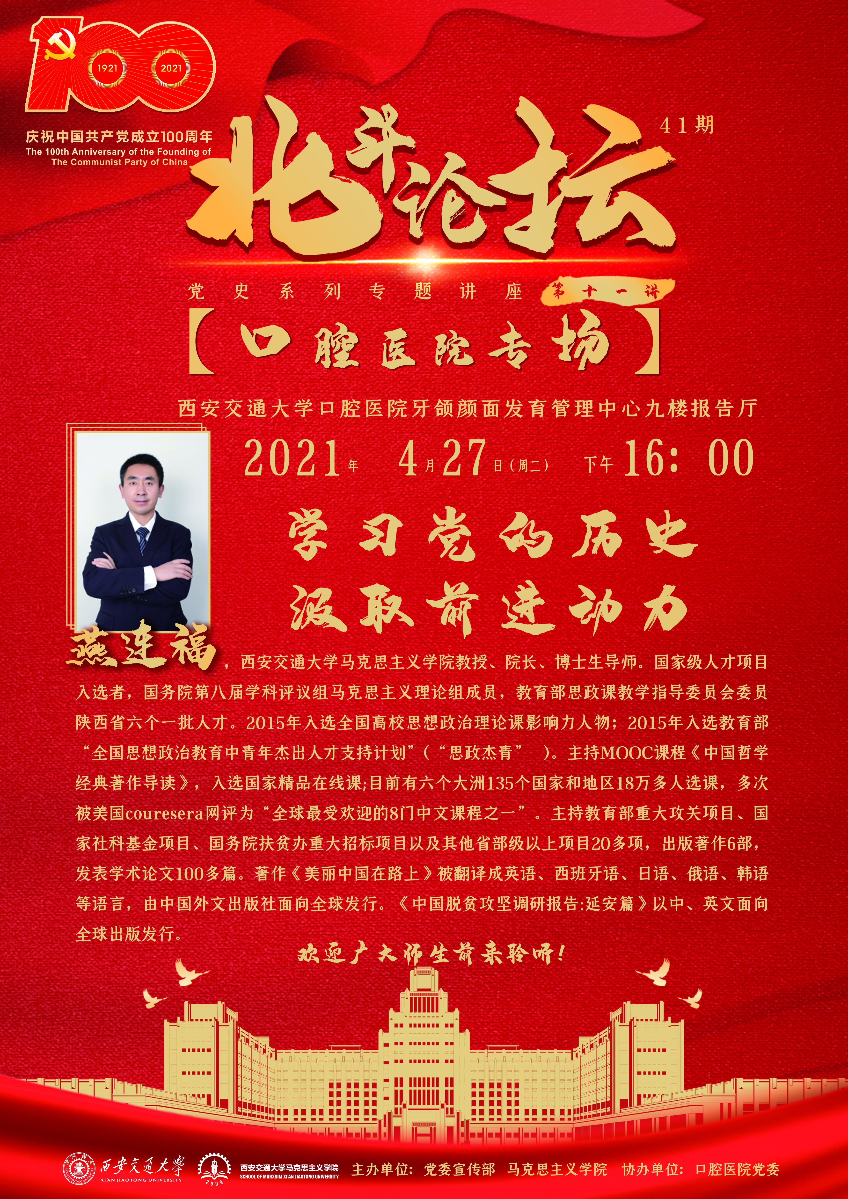 【讲座预告】北斗论坛41期----党史系列专题讲座第十一讲【口腔医院专场】