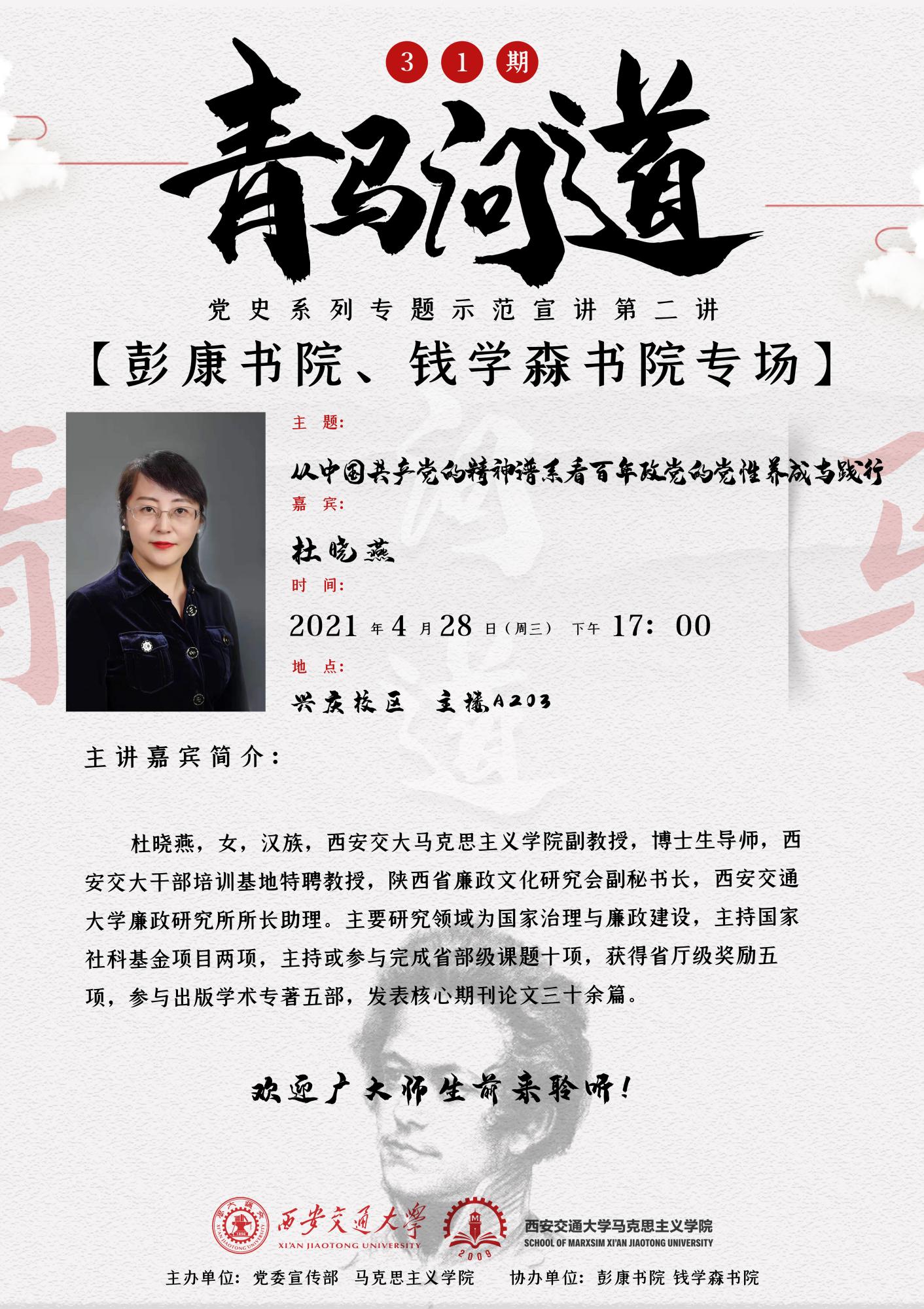 【讲座预告】青马问道31期----党史系列专题示范宣讲第二讲【彭康书院 钱学森书院专场】