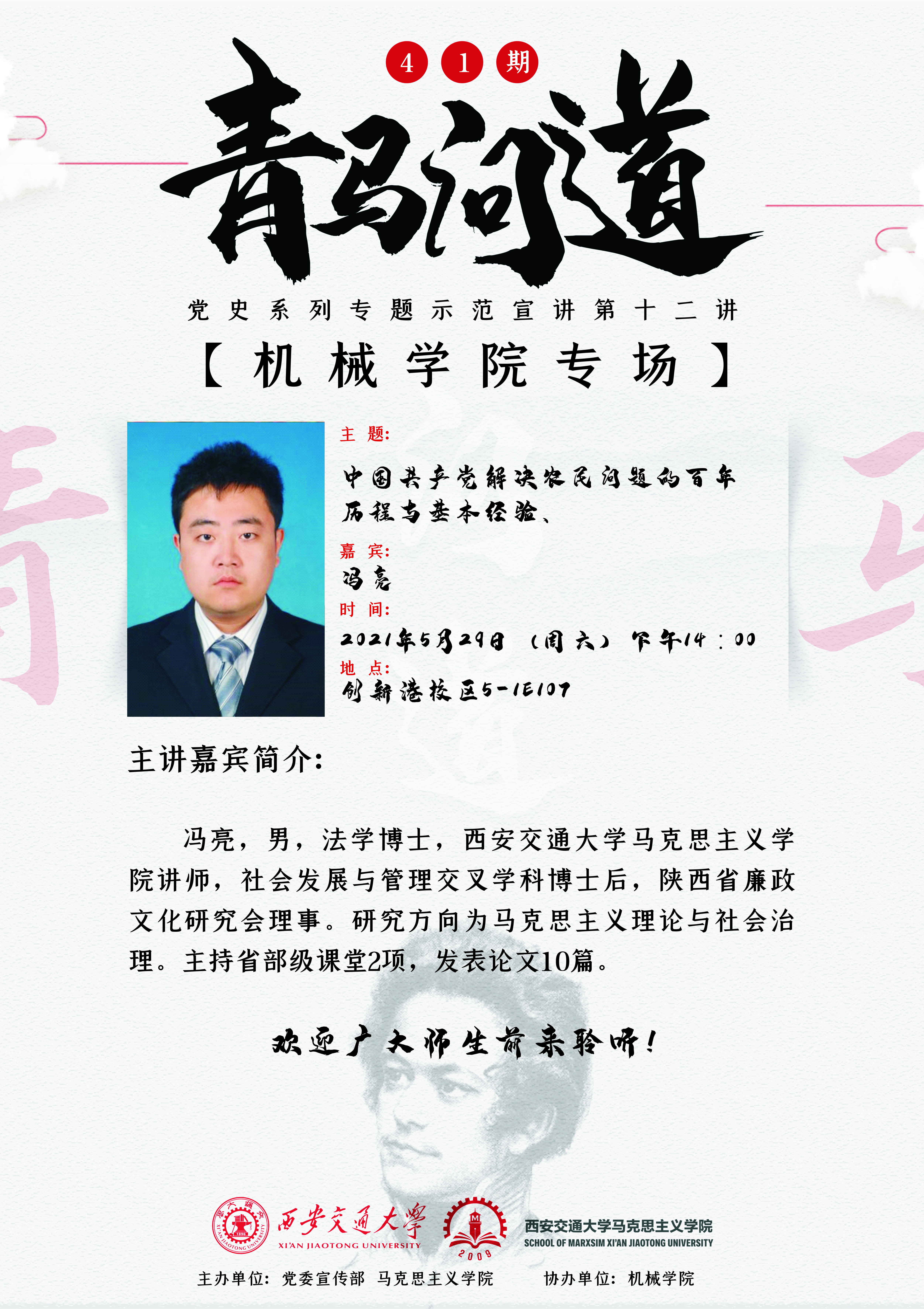 【讲座预告】青马问道41期----党史系列专题示范宣讲第十二讲【机械学院专场】