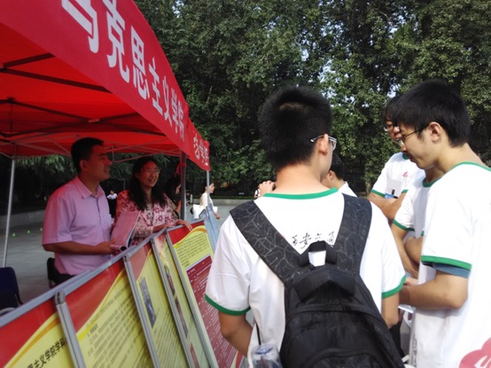 在燕连福副院长的带领下,各位师生现场大力宣传,吸引了诸多高校的优秀学生前来咨询,其中既包括本专业学生,也包括非本专业学生,师生们针对咨询者所提出一系列问题(诸如报考条件、面试时间以及学校培养计划等)作了详尽的解答和说明,之后有意向的同学进行了资料登记。