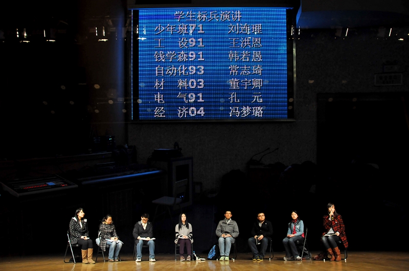 21日下午,另一项活动,“我的大学-学生标兵演讲会”也在宪梓堂举行。我校刘连理、王洪恩、韩若愚、常志琦、董宇卿、孔元、冯梦璐等7名学生标兵与全校 约2000名大一新生分享了自己大学学习和生活的经验。他们分别来自机械、经金、电气、材料等学院以及少年班、钱学森班等班级。学生标兵们结合自己的成长 之路,真诚、严谨又不失生动、风趣地向学弟学妹们介绍了自己学习、生活的切身体会和心得。演讲结束后的互动中,学弟学妹们就自己遇到的困惑和问题求教于学 生标兵们,学长学姐们也毫无保留,认真、坦诚作了回答。有学生表示,看到标兵们如此优秀,虽不免几分自叹弗如之感,但更多的是发自内心的钦佩和向他们学习 的决心。