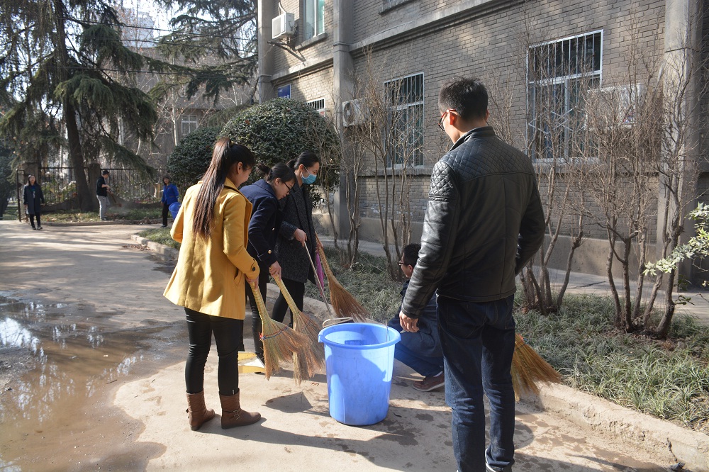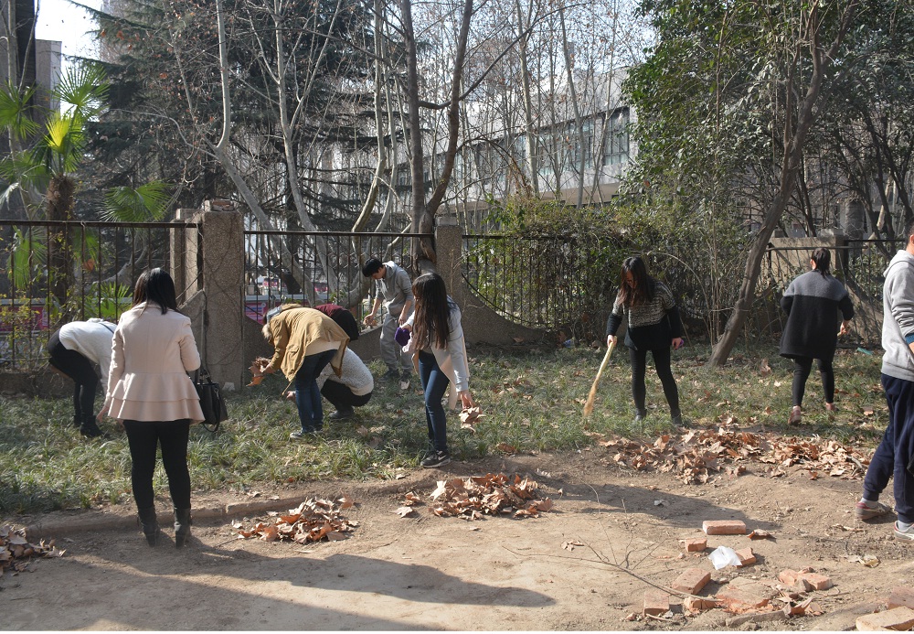 3月2日下午,在宋永平副书记的组织动员下和耿嘉敏老师的带领下,我院研究生主动承担了西1学生宿舍楼的卫生清理工作,学生处刘轩麟老师及物业处老师在现场指导大家工作。活动开始,同学们分工协作,大家对1层至4层的死角和污渍进行了认真细心的清理,并且清理了平时很难打扫的绿化带草坪。各个部门人员按照被分配的区域认真清扫,活动有条不紊的进行着。打扫期间大家将自己对校庆的期待注入行动中,认真打扫校园的每一个角落。在随后对绿化带的清理过程中,同学们积极出谋划策,想方设法,虽然尘土飞扬,但依旧保质保量的完成了绿化带的清理任务,对此,学生处老师及物业处老师赞不绝口。同时,同学们也十分感谢学工组耿嘉敏老师为大家准备的防尘口罩。