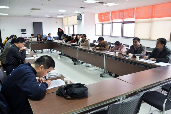 主办、马克思主义原理研究所承办的“政治理论课教师科研能力提升研讨会”,在主楼E703会议室举行。马克 思主义学院院长王宏波、人文学院党委副书记马晓彬,以及来自相关系所的30余名教师和博士生参加了此次会议。会议由院长助理燕连福主持。