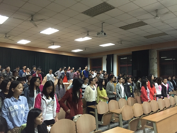 2015年10月13日晚,由马克思主义、人文、航天学院组成的三院联队在东二音乐教室进行了第三次“中华之声”大合唱排练。在短短的两个小时内,研一新生们精神高度集中,完成了当天的排练任务。