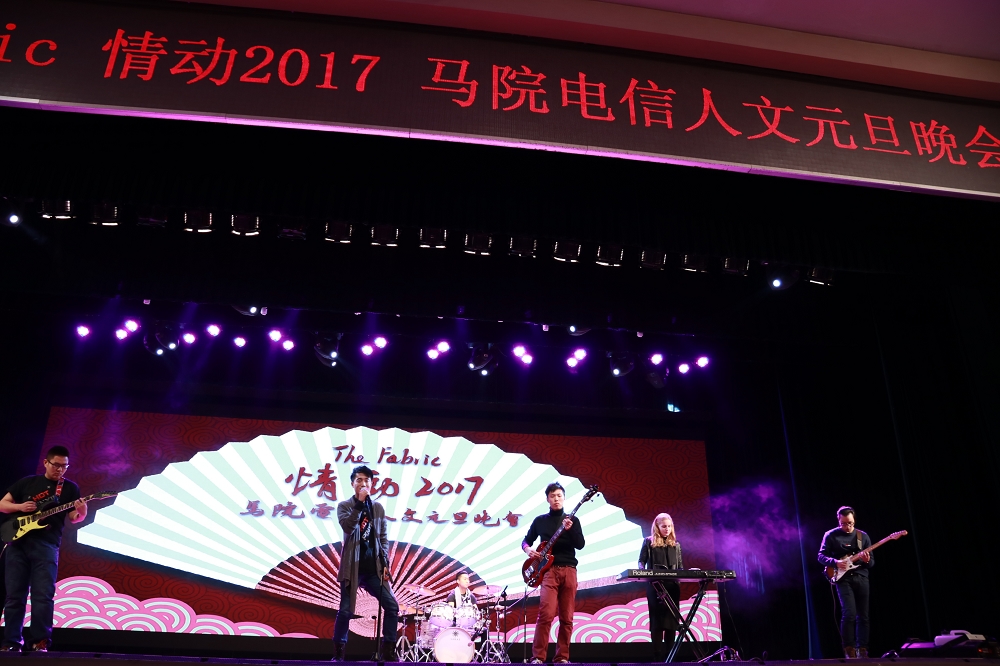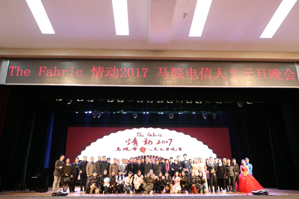 2016年12月26日晚7点,由“The Fabric ”服装品牌独家赞助,马院电信人文三院联合举办的“情动2017”元旦晚会在宪梓堂华丽上演,此次晚会在激情澎湃的摇滚中拉开序幕,主持人首先代表主办方对出席此次晚会的赞助商、就创中心郑旭红主任,研工部薛周利副部长,团委苏翔副书记,各学院领导,老师以及全体同学表示了热烈的欢迎。