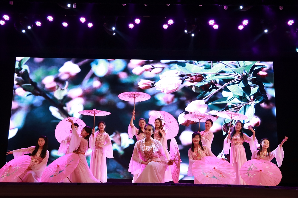 苏玉波老师带领的师生队伍为大家带来一支优美的中国舞《海棠》,悦耳的音乐,典雅的意境,让观众从刚刚的热闹中立刻安静下来,静静地欣赏这曼妙的舞姿。