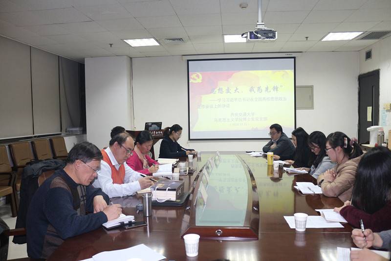 博士生党支部的基本架构和历次组织活动的开展情况进行了简要介绍,并带领全体参会人员通过观看视频对习近平总书记在全国高校思想政治工作会议上的讲话精神进行了重温学习。