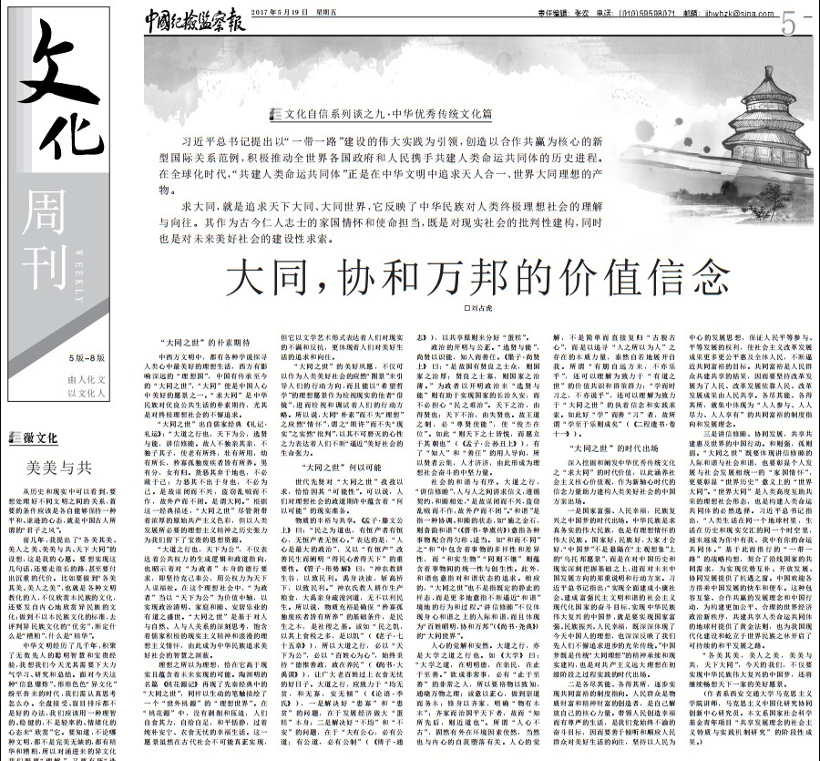 【中国纪检监察报】刘占虎:大同,协和万邦的价值信念