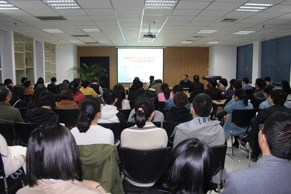 院长燕连福教授为学院师生作“中国特色社会主义进入新时代:十九大报告精神解读”的专题辅导讲座,深入解读十九大报告精神。报告会由学院党委书记苏玉波主持,学院师生党员80多人参加报告会。