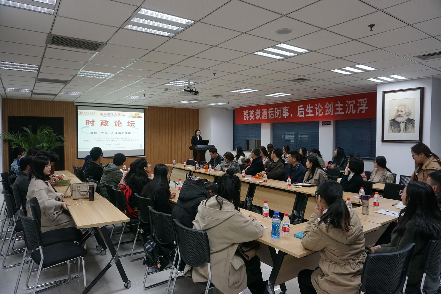 通过开展以聚焦十九大,析矛盾之变化为主题的时政论坛,与会师生对新时代中国矛盾的转变有了更深和更全面的认识,加深了师生之间的互动与交流,进一步培养了学生的全面看问题的能力与素养。