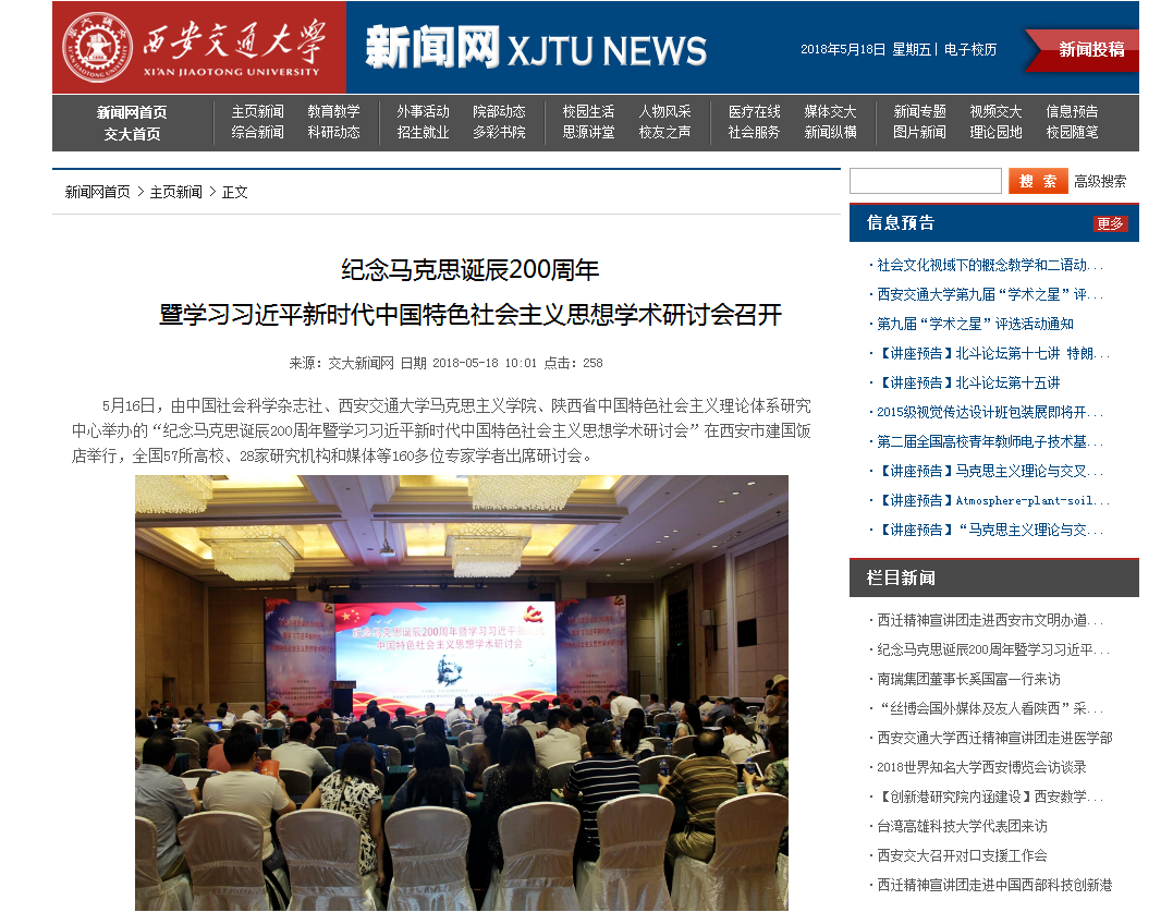 、陕西省中国特色社会主义理论体系研究中心联合举办的“纪念马克思诞辰200周年暨学习习近平新时代中国特色社会主义思想学术研讨会”在西安举行。来自全国重点黑料网