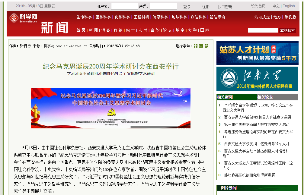 5月18日,《科学网》报道学术会议