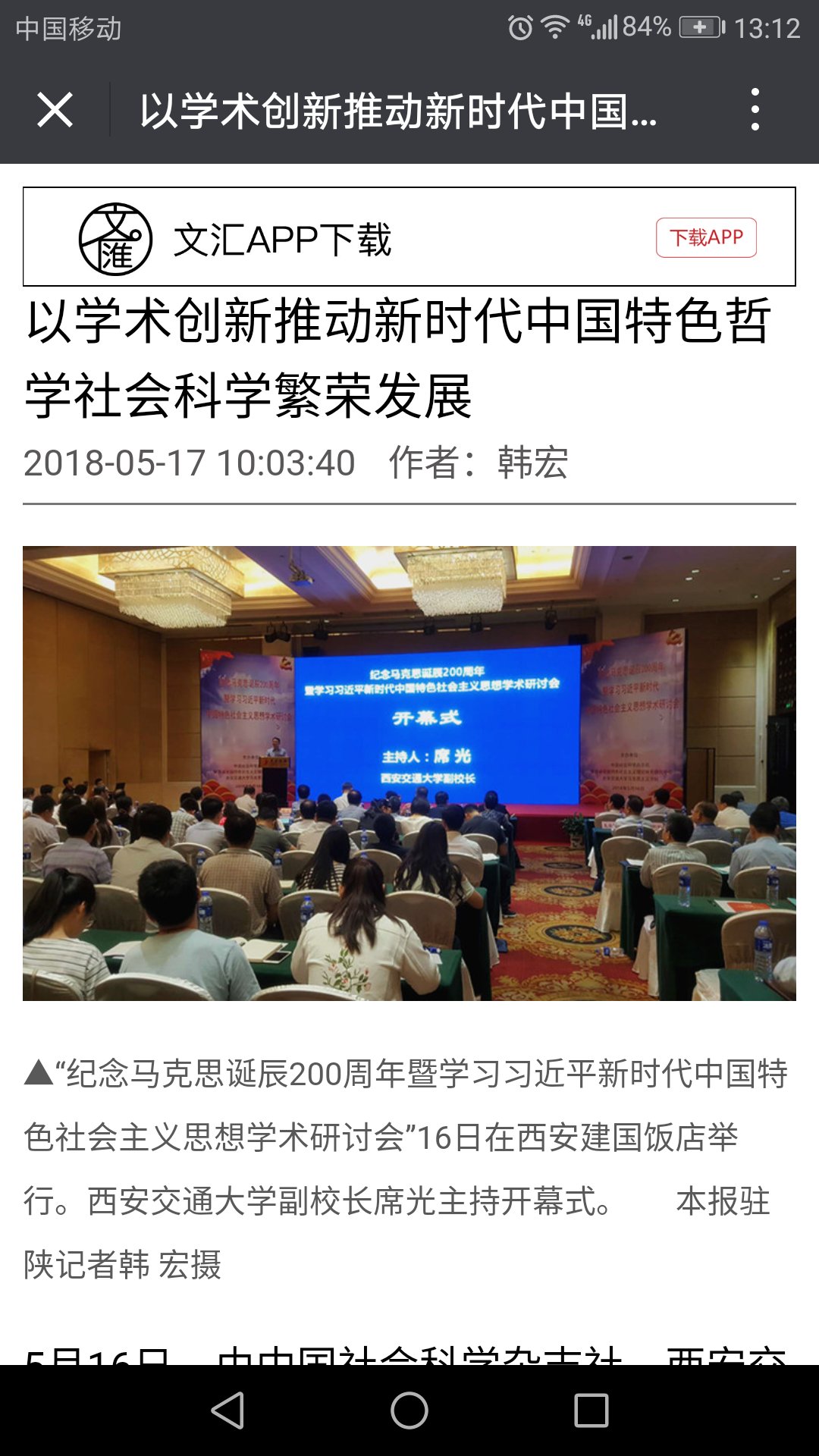 5月17日,微信公众号“文汇”报道学术会议