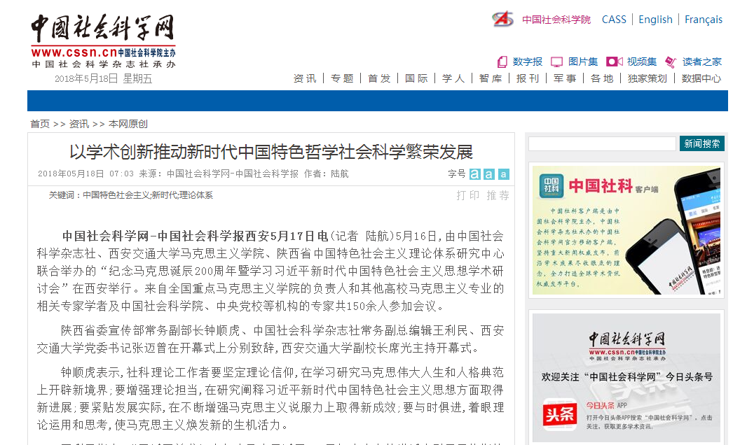 5月16日、18日,《中国社会科学网》两次报道学术会议