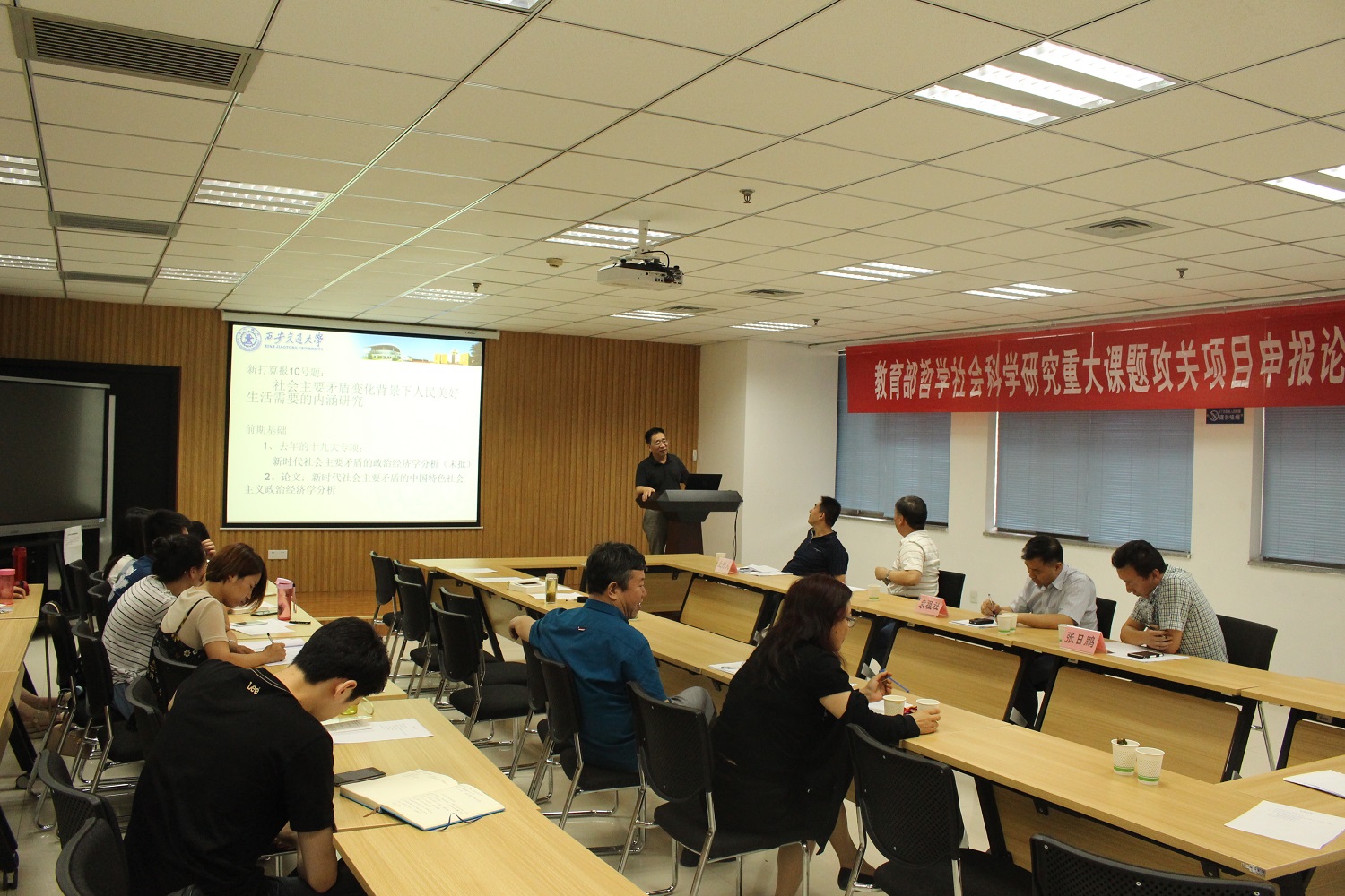 为推动2018年度教育部哲学社会科学研究重大课题攻关项目申报工作,提高申报质量,6月13日下午,我院在主楼E505会议室召开了项目申报论证会。会议邀请了陕西师范大学袁祖社教授、公共管理学院张思锋教授、社会科学处张日鹏副处长作为论证专家。学院申拟申报的教师、课题组成员以及部分感兴趣的教师参加了论证会,会议由燕连福院长主持。