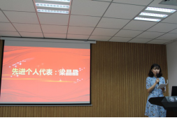 会议的第二项议程是先进个人代表发言。教师党员代表韩锐和学生党员代表梁晶晶分别结合自身工作和学习情况表达了作为一名党员如何发挥先锋模范作用、不忘初心砥砺前行的心路历程,及如何将专业研究和个人信仰结合起来的体会。