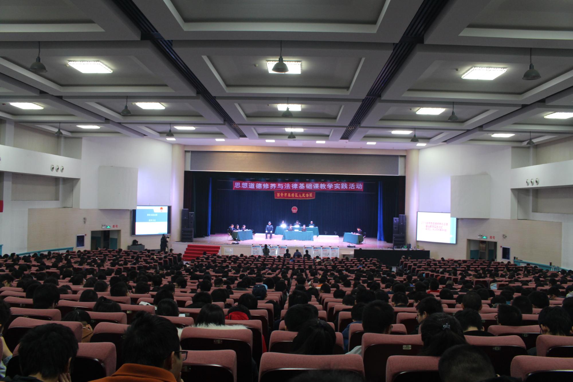 为进一步提升学生法律意识,增强学生学法、尊法、守法、用法的直观体验和敬畏意识。按照本学期“思想道德修养与法律基础”课程的教学计划,11月12日-13日下午,受我院思想政治教育研究所邀请,西安市雁塔区人民法院分别在西安交大西区505体育馆与东区宪梓堂公开庭审两起刑事案件。思想政治教育研究所所长杨华及任课教师与广大师生到场参与了庭审活动。