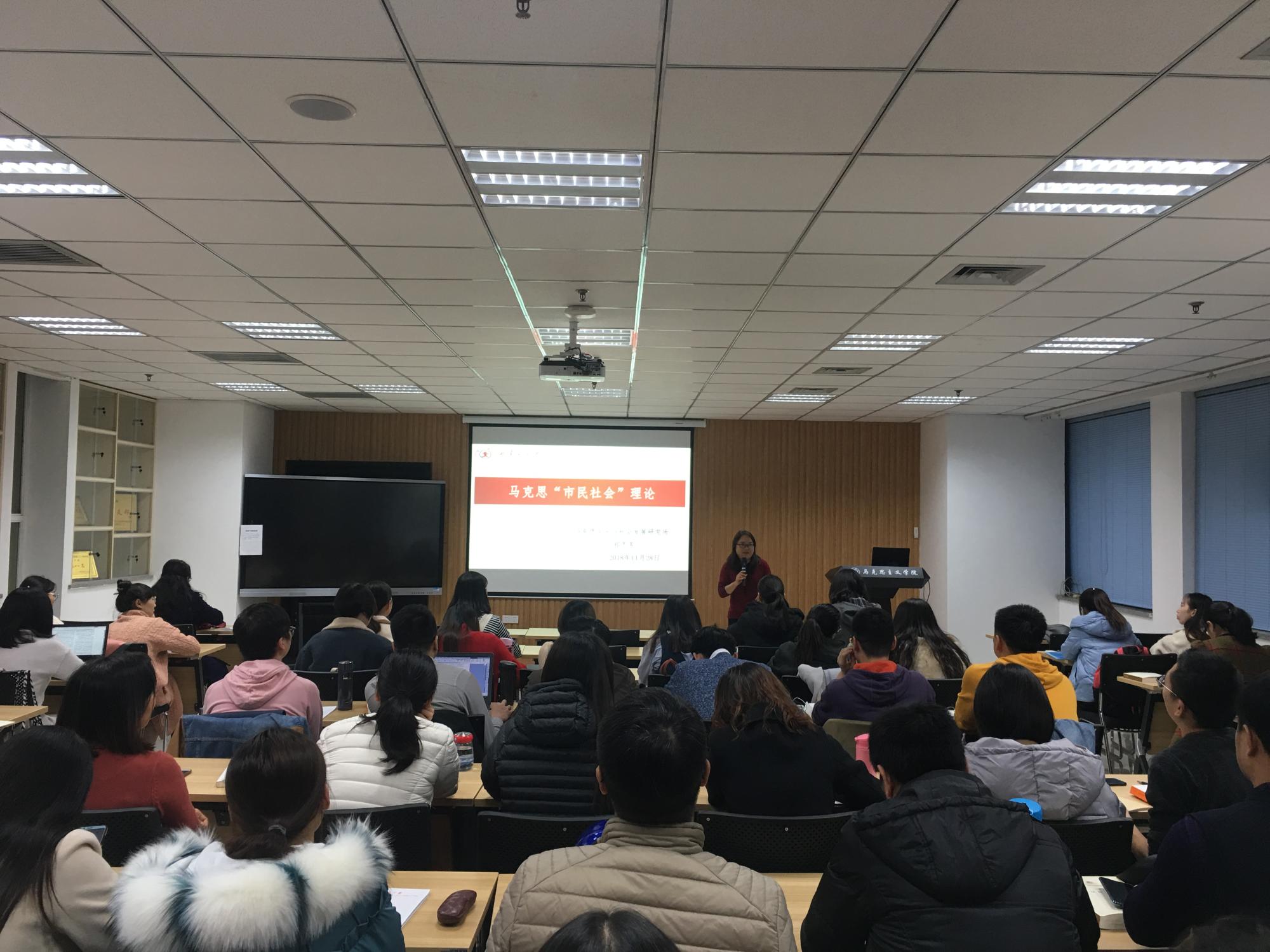 马克思主义教授、博士生导师郑冬芳教授应邀就“马克思“’市民社会’理论”为学院师生做学术报告,本次报告吸引了来自各学院的近百名师生前来聆听,报告由院长助理樊晓燕副教授主持并做最后总结。