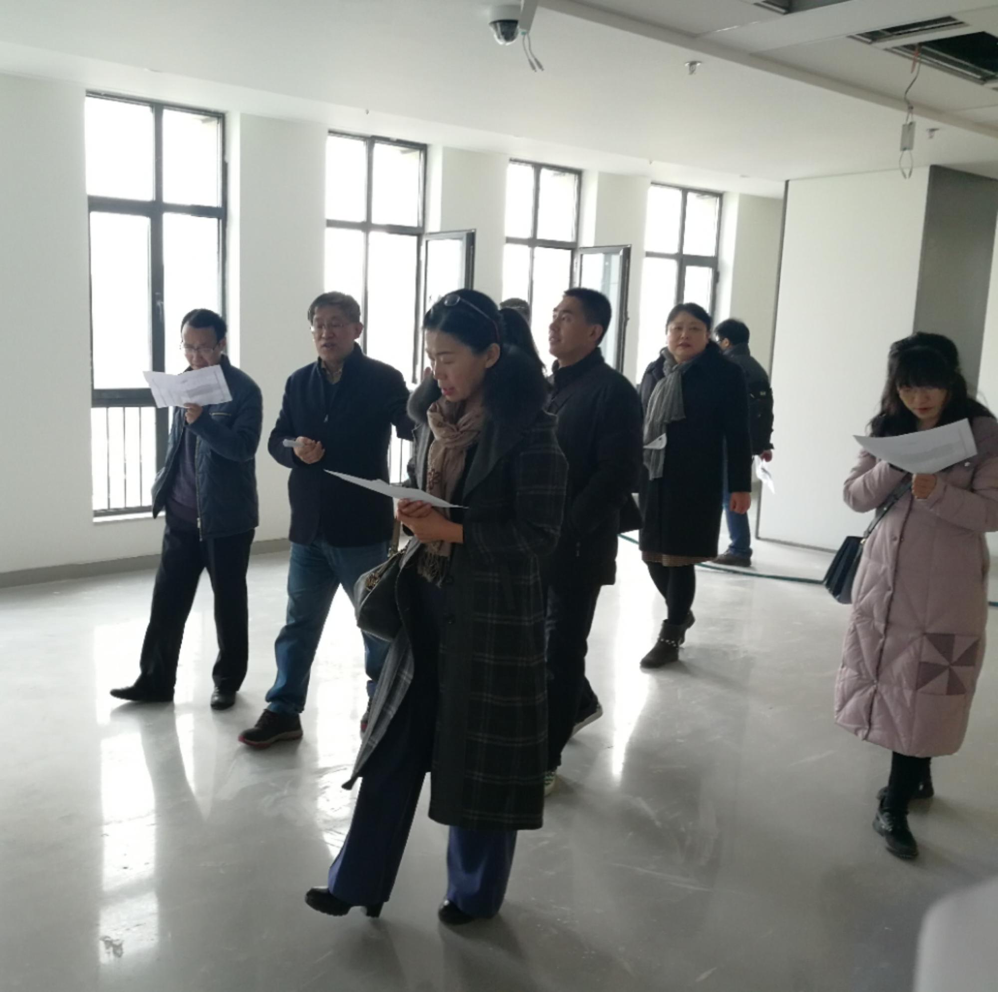 领导工作小组一行参观了5号楼5层预分配物理空间,对所分配的整体结构和空间布局进行详细查看和了解,对各公共功能区逐一划分,并就二次装修的设想等具体问题逐一与各研究所进行沟通。
