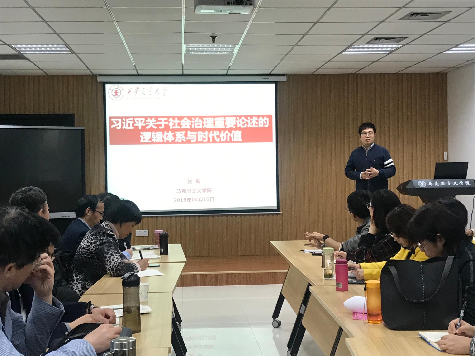 新进教师张振博士作为“学术工作坊”第一期的主讲人,做了题为《习近平关于社会治理重要论述的逻辑体系及时代价值》的研究报告。他在深入研究习近平关于社会治理的重要论述的基础之上,思考并提炼出一套完整的逻辑体系,包括“总体理念、整体格局、体制机制、方式方法、重点难点”五个部分,并在此基础上探寻其时代价值。张振博士的研究不仅基础扎实、逻辑清晰、内容丰富,同时结合社会治理领域的新现象、新方法与新数据,为中马所师生呈现了一份精彩的研究成果。