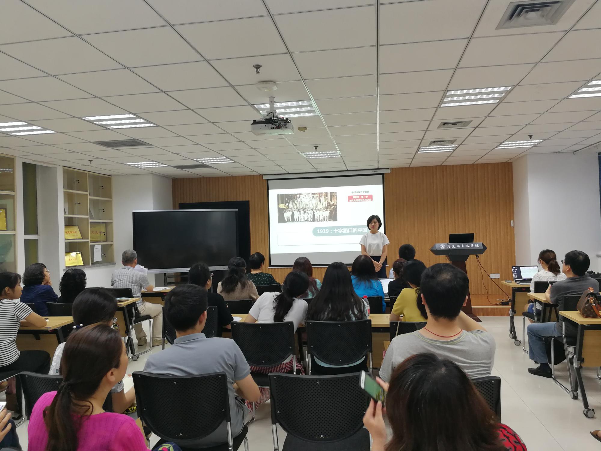 作为第四届全国高校青年教师教学竞赛思政课专项组一等奖获得者,李蕉副教授首先以一段20分钟示范课“1919:中国在十字路口”的展示吸引了全场的目光,诠释了什么是学生喜欢的优质思政课。课程聚焦五四运动这一历史事件,从中国与世界,威尔逊主义和马列主义,资本主义和社会主义的视角切入,用翔实的资料,严密的逻辑,推演出中国为何在1919年这个历史节点选择了马克思主义,无产阶级登上历史舞台。