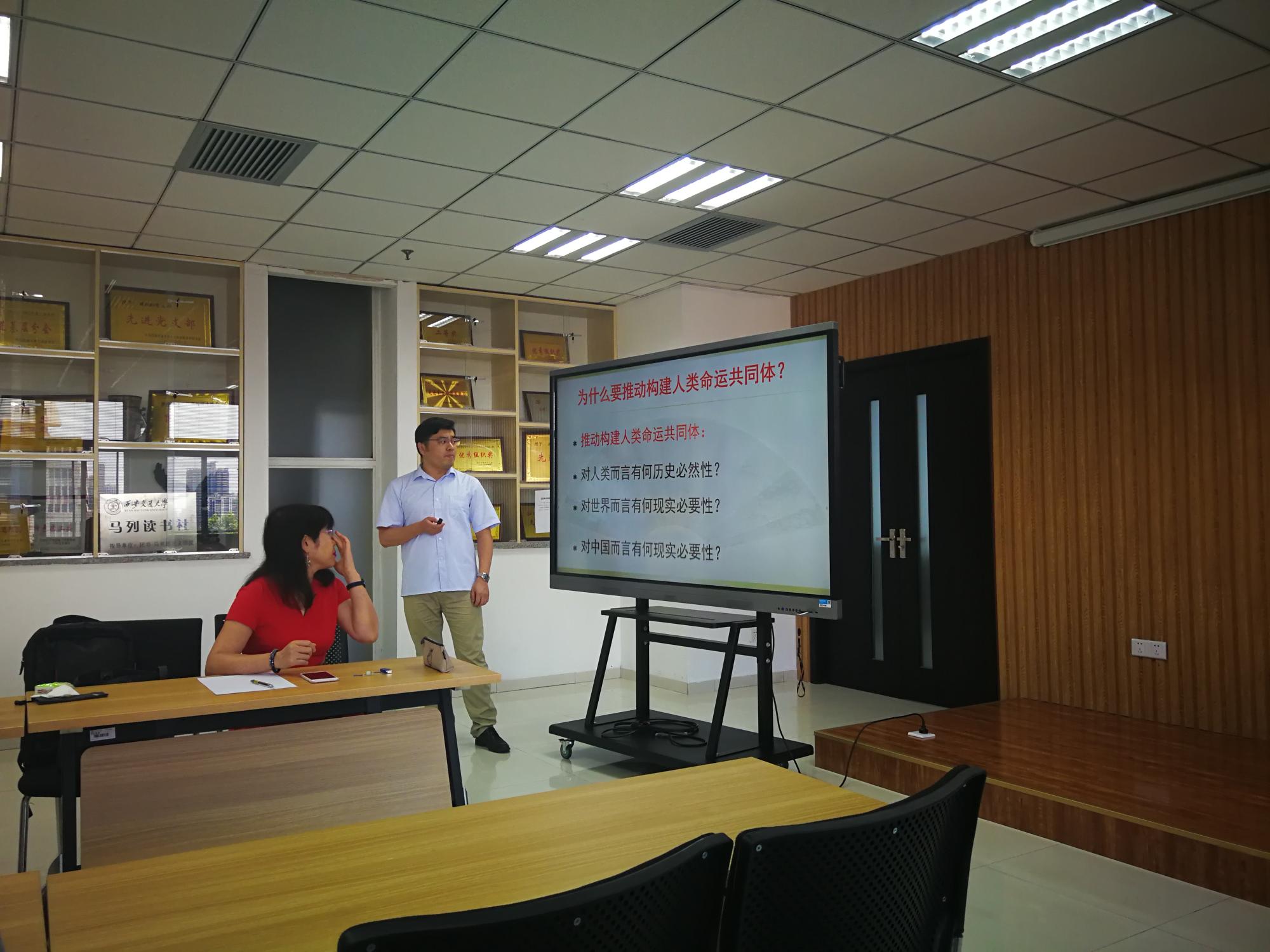 金新老师以《为什么要推动构建人类命运共同体》为题,从人类、世界、中国三个维度出发,详细阐述了推动构建人类命运共同体的必然性、紧迫性和必要性。李秀珍老师以《当代世界政治》为题,分析了习近平总书记“百年未有之大变局”重要论断的内涵、当前世界格局和国际秩序等核心议题。在讲授环节之后,参加工作坊的各位师生就授课内容、PPT呈现以及授课方式等问题向二位老师提出许多宝贵意见。