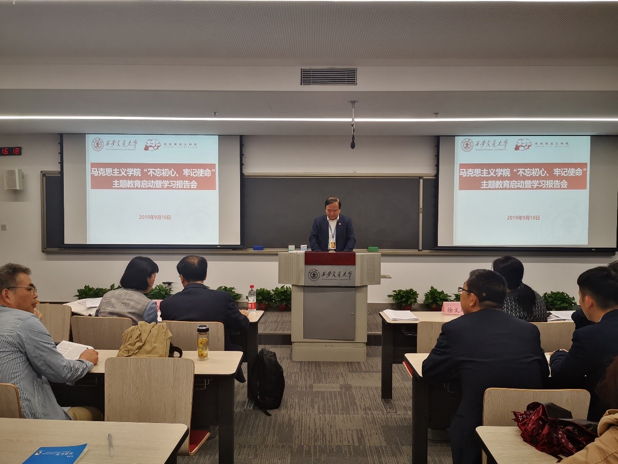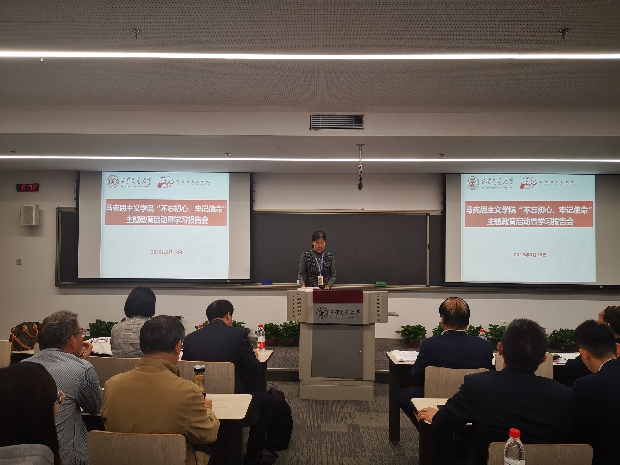 “不忘初心、牢记使命”主题教育工作方案》的统一部署,结合《马克思义学院“不忘初心、牢记使命”主题教育工作实施方案》要求,动员全体党员认真学习习近平总书记在“不忘初心,牢记使命”主題教育工作会议的重要讲话精神,扎扎实实做,坚持“马院姓马、在马言马”,落实立德树人根本任务,努力把主题教育抓出成效。