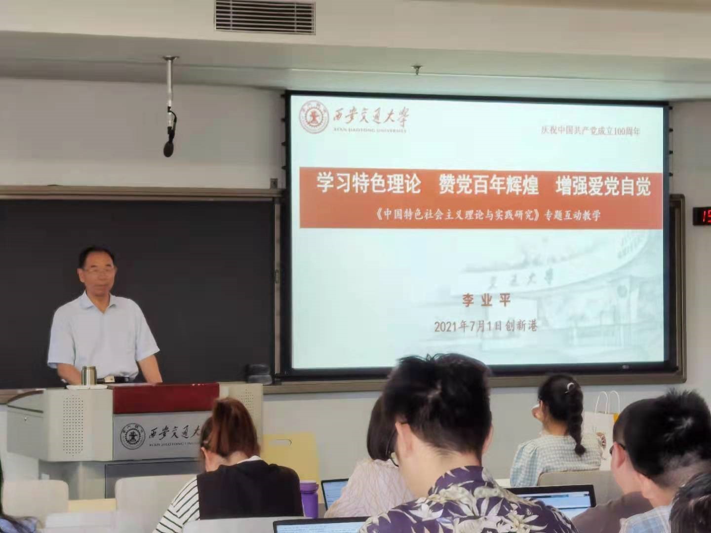 汇报结束后,李业平教授用“新、精、实、准、美”五个字对十位同学的汇报发言进行点评,从“四个始终”即党始终走在时代潮流最前列、始终站在攻坚克难最前沿、始终维护人民根本利益、始终加强党的自身建设,回答了学员提出的百年政党风华正茂的青春秘密。最后,他以在党50年的长者,对学生提出语重心长的寄语,希望我们珍惜时光、珍惜机遇,学好用好习近平中国特色社会主义理论,坚定理想信念,增强爱党跟党自觉,强化使命担当,弘扬交大西迁精神,争做新时代又红又专的合格的接班人。