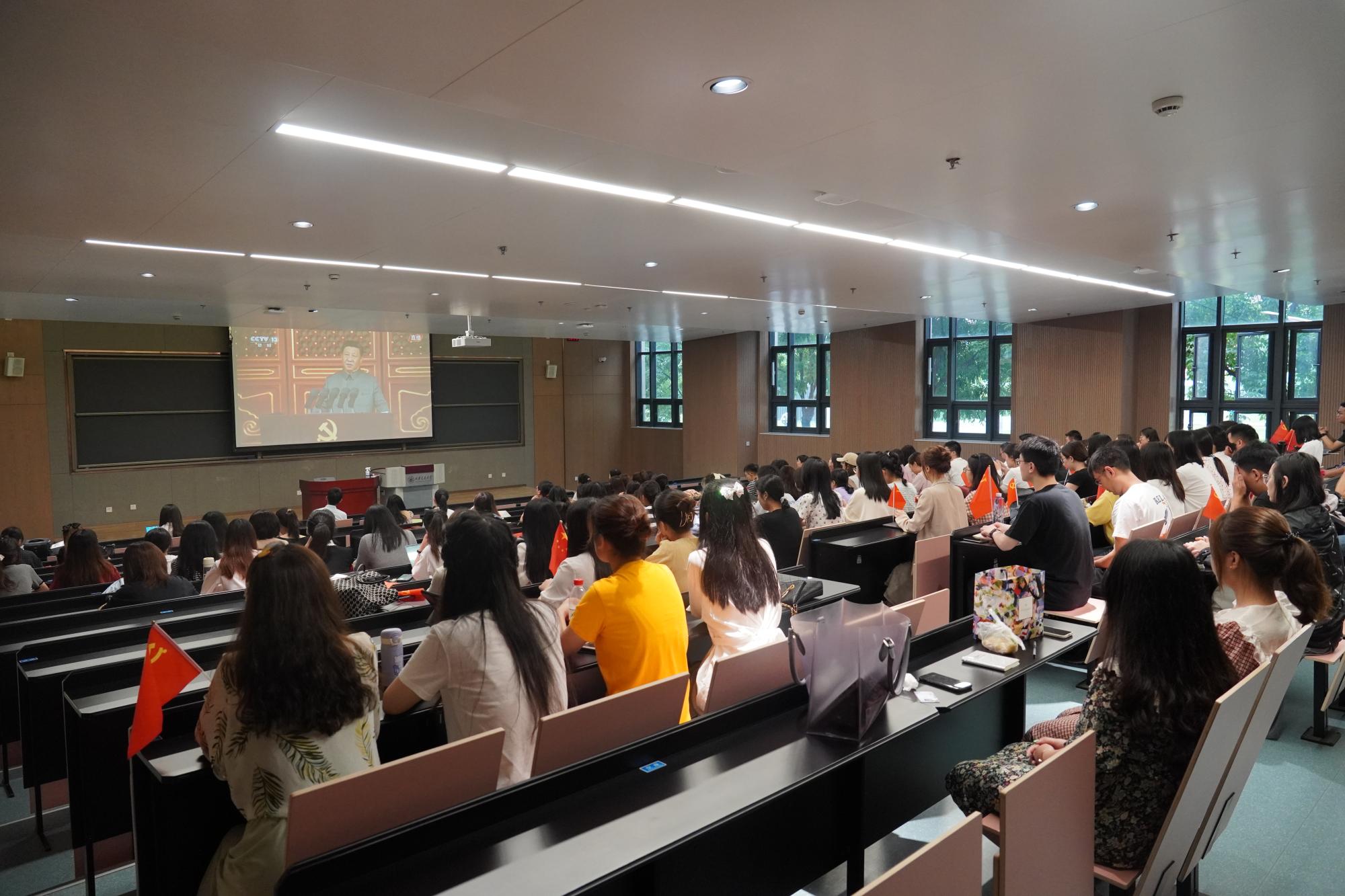师生分别在兴庆校区科学馆101报告厅、主E505会议室以及创新港校区5-1E101报告厅等地集中观看了庆祝大会直播,热烈庆祝中国共产党百年华诞,并纷纷表达了自己内心真挚的情感。