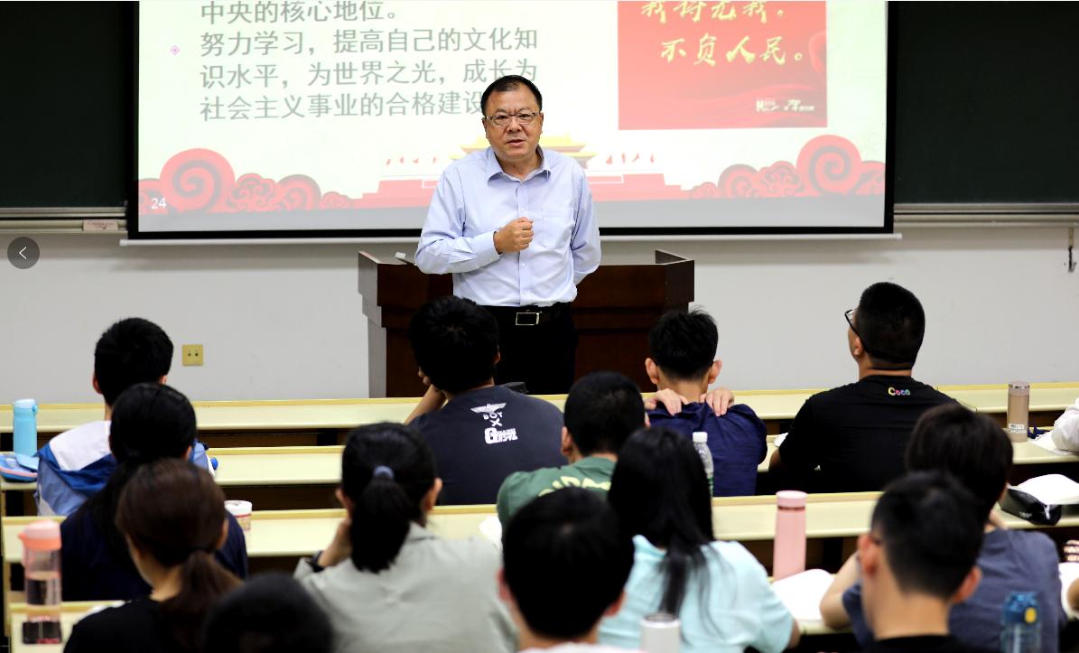 授课过程中,裴广强副教授分别从“中国共产党是抵抗日本侵略的民族先锋、中国共产党是全民族抗战的领导核心、中国共产党是抗战正确方向的引领”、中国共产党是抗战胜利的决定性力量”四个方面深入分析了中国共产党在抗日战争中所起到的中流砥柱作用。讲授中同学们认真听讲,互动环节气氛热烈。