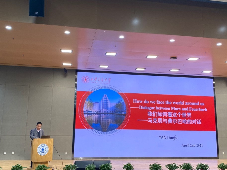 燕连福教授作了题为“我们如何看这个世界——马克思与费尔巴哈的对话(How do we face the world around us——Dialogue Between Marx and Feuerbach)”的报告。燕教授从如何以哲学的角度看世界出发,对马克思在《关于费尔巴哈的提纲》中所论述的哲学原理进行了提纲挈领的阐述,最后提出要从这一经典著作中汲取认识世界、改变世界的智慧。