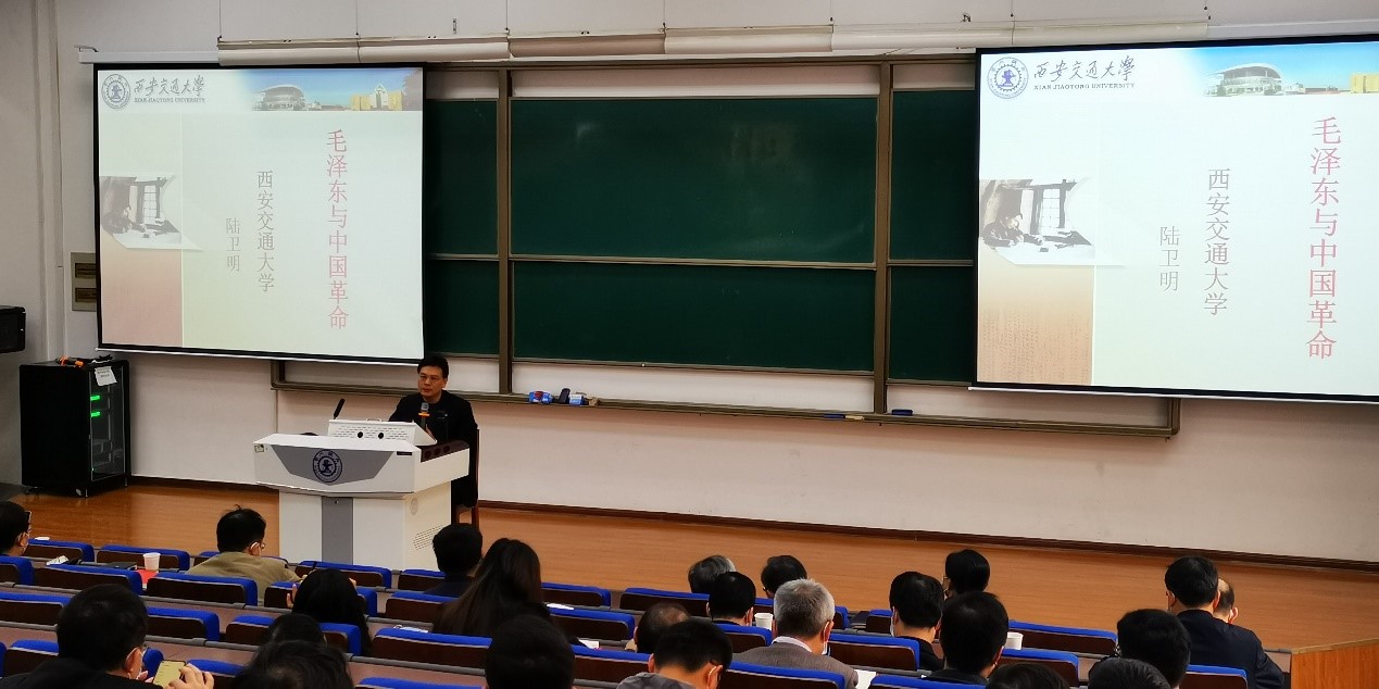陆卫明教授应邀作题为“毛泽东与中国革命”的党史学习教育专题讲座,校党委常委、宣传部部长成进,中国工程院院士、电信学部教授郑南宁,中国科学院院士、西安交大电信学部主任管晓宏,黑料网