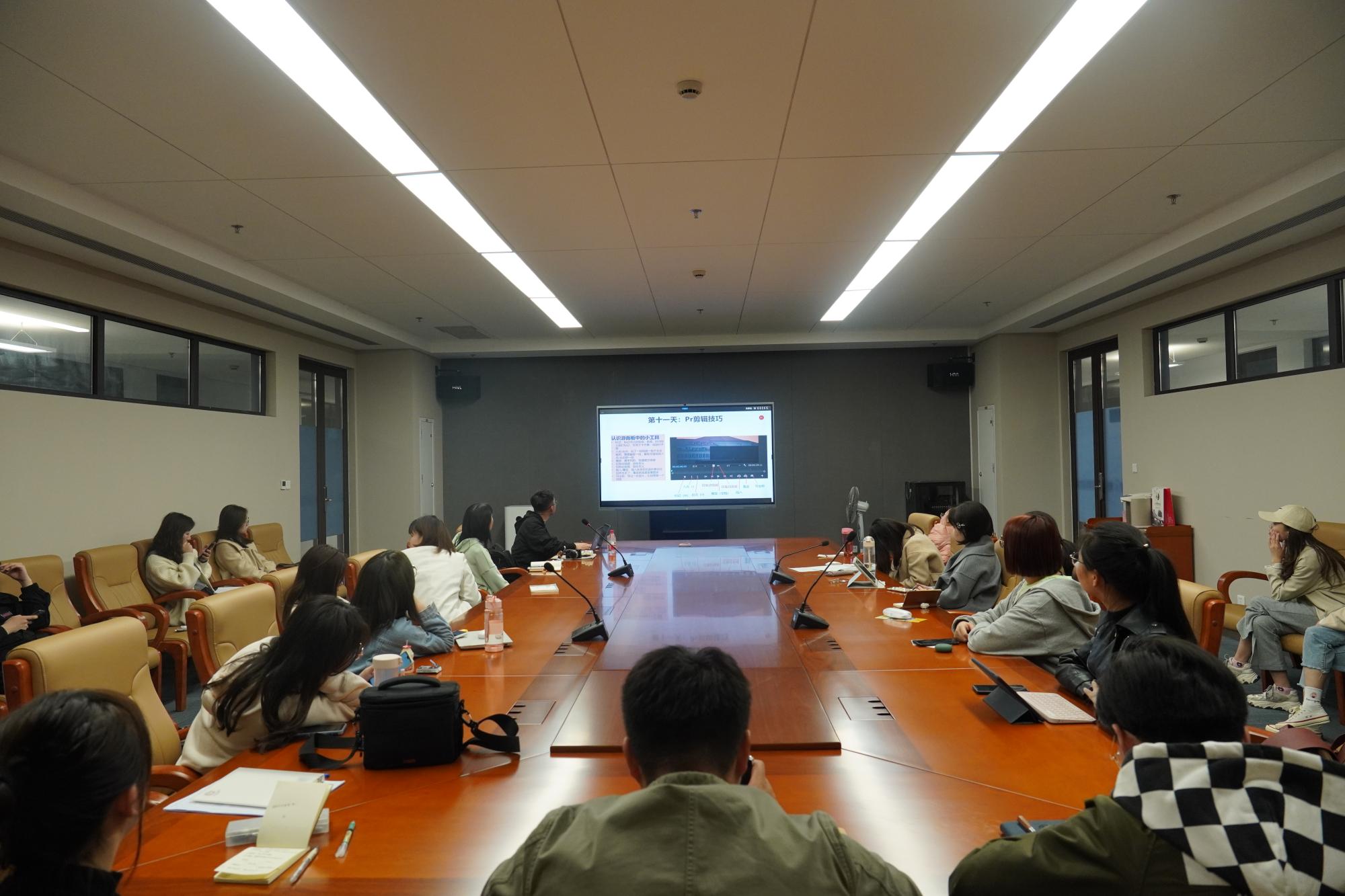 张少荣以“15天入门视频制作”为主题,从“为什么要做视频”的初心开始分享,以自身原创的图片和视频为例,详细地介绍了照片构图和后期,视频拍摄和剪辑“速成”的一些技巧,大大拓宽了同学们的知识面,引起了大家极大的兴趣。培训会结束后,大家还饶有兴趣地和张少荣同学进行深入的交流和探讨。