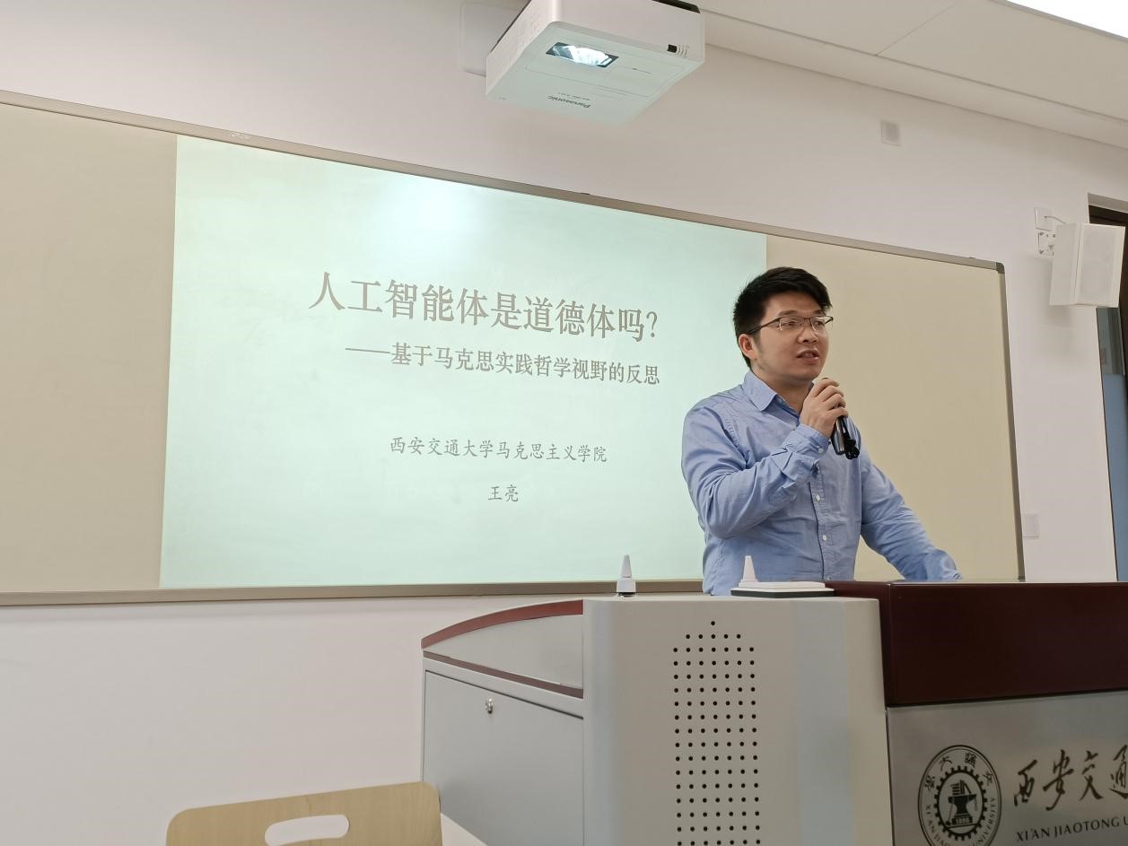 讲座伊始,王亮博士从“无人驾驶汽车的道德责任归属”问题出发,引入本次讲座的主题。他从介绍西方传统道德理论对人工智能道德体问题的解决方案出发,引入马克思实践哲学的角度对该问题进行反思。王亮老师指出:一方面,人的自由不能简单归结为自由意志,而是实践中的自由的体现;另一方面,人-机道德实践不是基于心理体验,而是基于现实的改变。王亮博士认为,马克思主义实践观具有彻底的革命性、深刻的现实性以及与时俱进的开放性,而人工智能道德问题是对马克思实践哲学精神的再现。在交流环节中,与会人员就相关问题展开讨论。