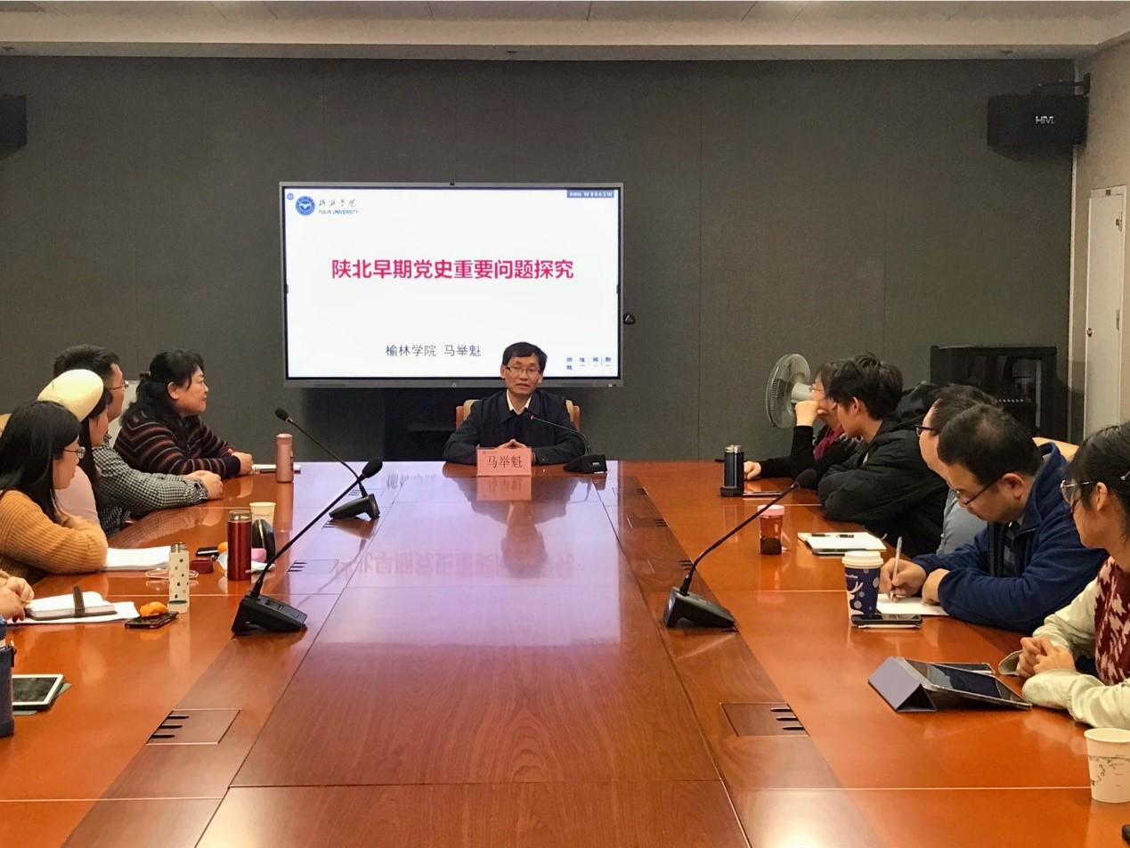 资深教授、陕西省党史专家、红色文化研究与传承中心主任马举魁教授应邀莅临我院,在涵英楼6楼大会议室作了题为 “陕北早期党史重要问题探究”的学术讲座。讲座由西北革命史研究中心马金玲副教授主持,中国近现代历史所全体师生参加了本次工作坊。