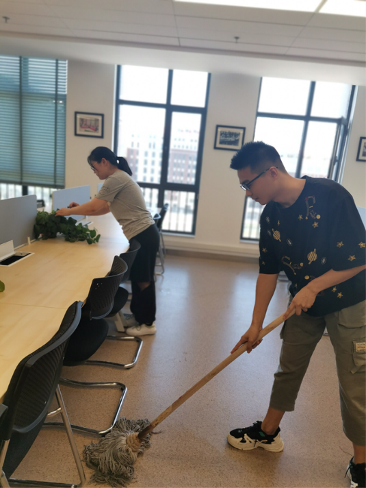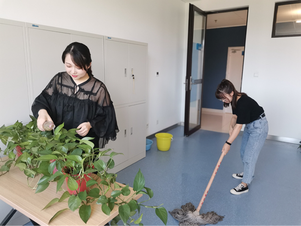 本次活动是在响应学校科创月大的环境背景下,充分动员支部党员发挥带头示范作用。广大党员同志们积极响应,认真参与,在学院研究生学习的工位、教研室等地开展扫地拖地,为绿萝浇水、清洁学习桌椅等劳动,在大家的齐心协力下,学习的工位及其系所办公室的面貌焕然一新!
