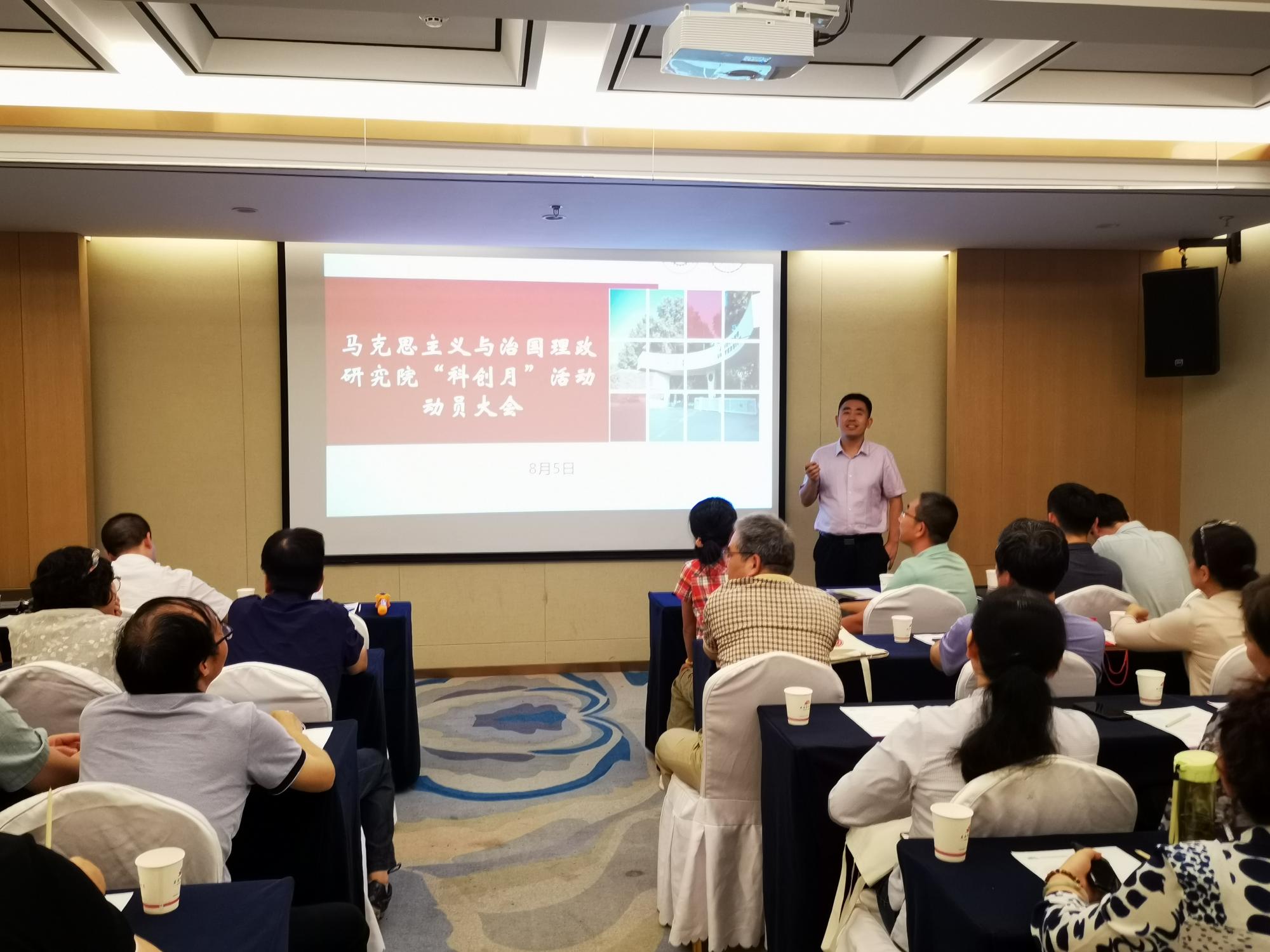 在创新港召开2020年暑期教职工大会,贯彻落实学校暑期工作会议精神,统筹推动马克思主义与治国理政研究院平台建设及“科创月”活动。会议要求,全院教职工要认真学习、贯彻落实学校暑期工作会议精神,即刻行动起来,全身心投入到创新港研究院建设和“科创月”活动中。