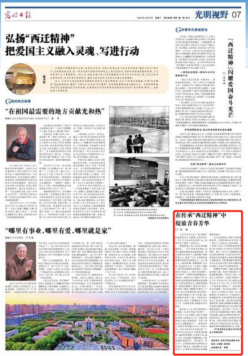 激发奋斗之志,续写爱国奋斗新篇章。60余年的奋斗征程中,一代代交大人牢记嘱托,始终以国家富强和人民福祉为己任,为建设西部呕心沥血、砥砺奋进。在老一辈西迁人的激励感召下,一批批青年人选择在西部建功立业、生根开花。正如习近平总书记指出的,“广大青年应该在奋斗中释放青春激情、追逐青春理想,以青春之我、奋斗之我,为民族复兴铺路架桥,为祖国建设添砖加瓦”。我们青年一代交大人,必须抓住新时代新机遇,在风浪中历练成长,在拼搏中充实青春岁月,让青春芳华绽放在祖国最需要的地方。