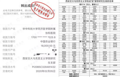 2月5日,马院全体研究生支部自发组织捐款,本着自愿、透明、公开的原则,学院硕博研究生共筹得善款1.8万元,全部定点捐赠于华中科技大学同济医学院附属协和医院,为抗击疫情奉献一份爱。