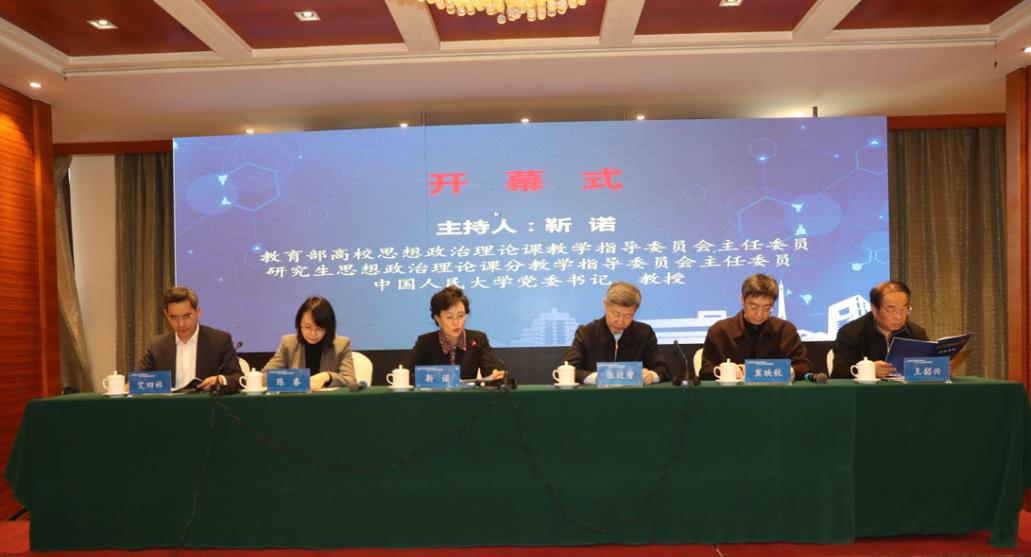 教育部高校思想政治理论课教学指导委员会主任委员、教育部研究生思想政治理论课分教学指导委员会主任委员、中国人民大学党委书记靳诺教授主持开幕式并做主旨报告。她强调这次会议的任务是深入学习贯彻党的十九届四中全会精神,坚持以习近平新时代中国特色社会主义思想为指导,认真学习贯彻落实习近平总书记“3·18”重要讲话精神,推动落实中共中央办公厅、国务院办公厅《关于深化新时代学校思想政治理论课改革创新的若干意见》,以及《新时代爱国主义教育实施纲要》落地落实,在研究生教育教学层面扎实推进习近平新时代中国特色社会主义思想“三进”工作,切实提升研究生思想政治理论课教学时效性,推动建设高层次高质量的研究生思想政治理论课。为此要提高政治站位,有强烈的责任感、使命感和清晰的方位感,把握新时代研究生思想政治理论课改革创新的核心要义。她认为2019年是不平凡的一年,学校思想政治理论课改革持续推进、不断向好;改革措施务实有效;课程体系更加丰富;支持保障更加有力;工作格局不断拓展,教育部研究生思想政治理论课分教学指导委员会在推动工作方面取得了积极成效。2020年要以理论研究的深入推动教学内容升华,以学科建设发展领航课程体系建设,以深化调研成果的运用进一步推进教材体系建设,以强化队伍建设提升教师能力水平的提高,以强化机制建设增强课程满意度,有新进展、新面貌、新成果。