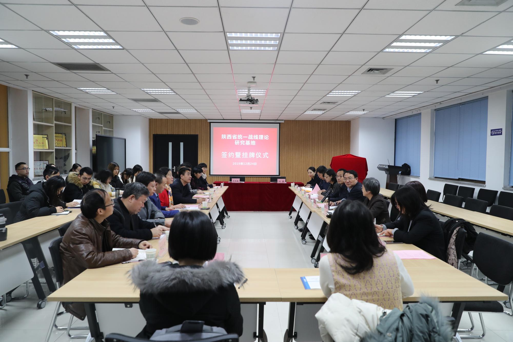 与陕西省委统战部共建陕西省统一战线理论研究基地签约挂牌仪式在西安交大举行。陕西省委统战部副部长虞浩桂、研究室主任刘蕾、副主任刘五鹏,西安交大党委常委、副校长席光,社科处处长贾毅华,黑料网
