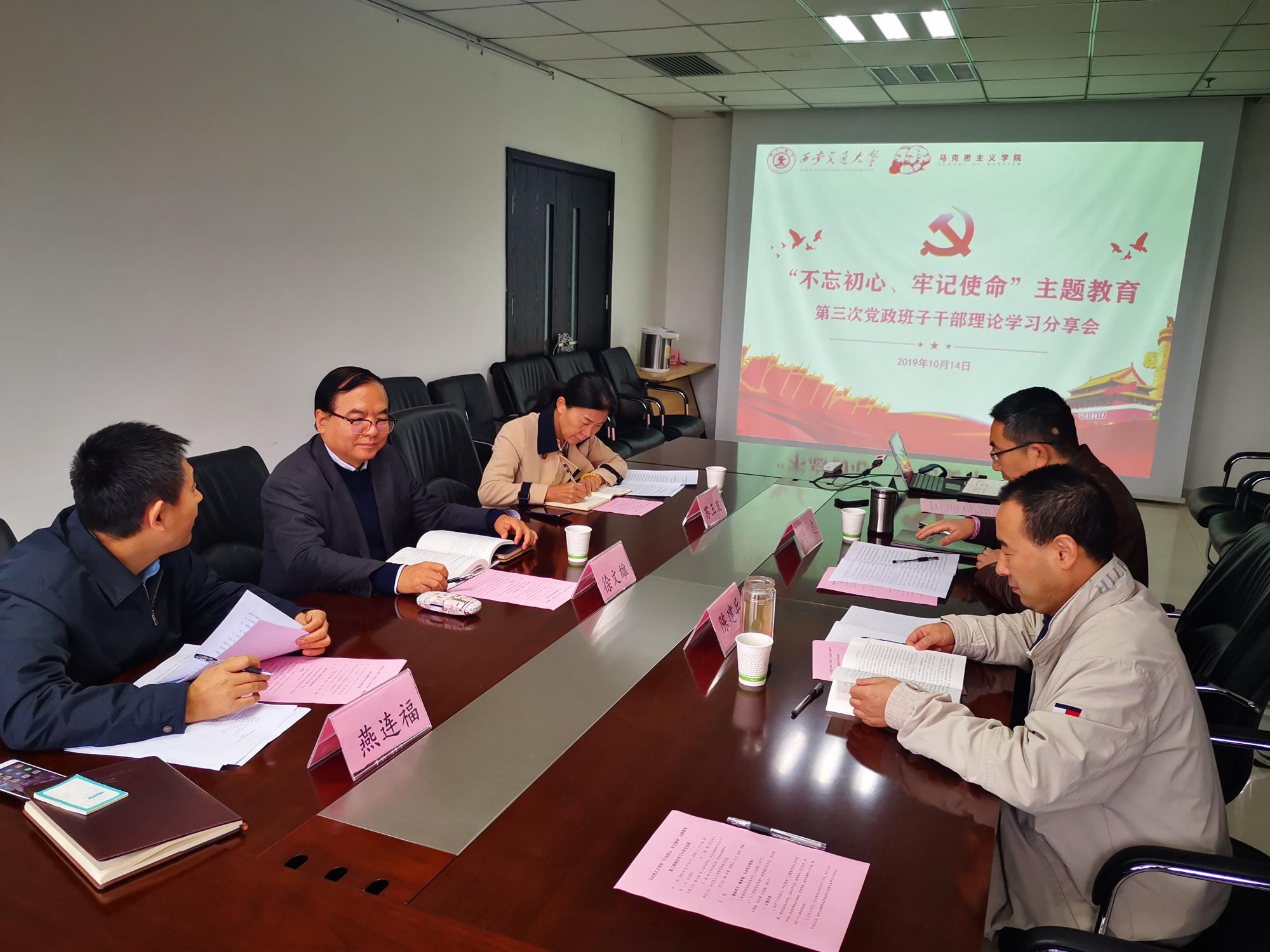 在主E506会议室开展“不忘初心、牢记使命”主题教育第三期理论学习分享会。学校“不忘初心、牢记使命”主题教育第十一指导组组长徐文雄出席会议,学院党政班子成员参加会议,会议由学院党委书记苏玉波主持。