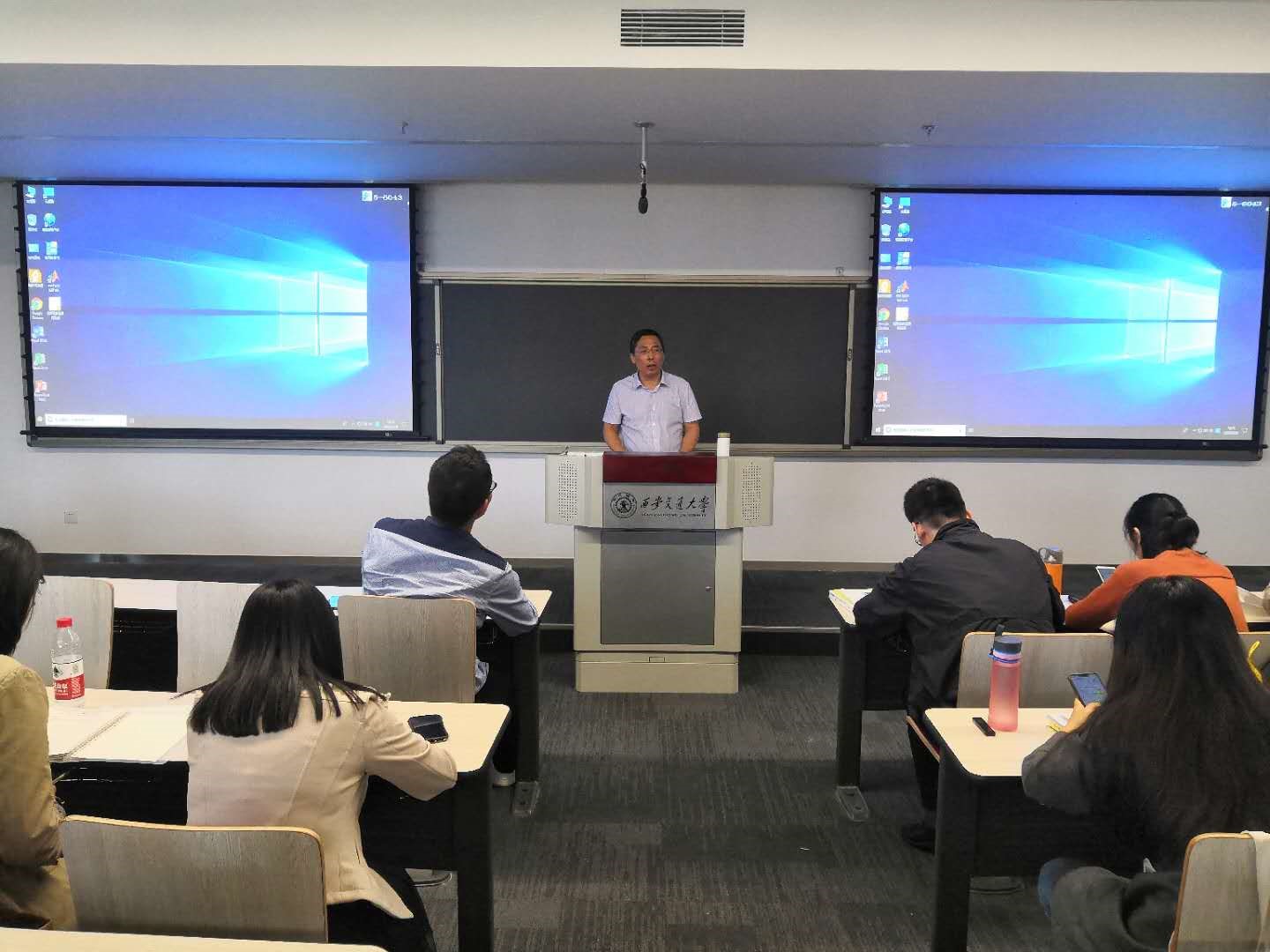 二级教授、博士生导师王永贵做客马克思主义与治国理政研究院“贯彻落实习近平3.18讲话和中央文件精神系列讲座”,在涵英楼为刚刚入驻创新港的2019级硕、博士研究生作了关于论文写作的主题报告,报告由卢黎歌教授主持。