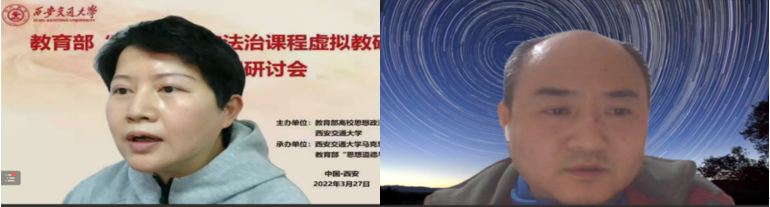 马院二级教授、国家级教学名师卢黎歌教授,分享了虚拟教研实验室的品牌活动“东亭名师讲坛”系列活动的设计目的、意义和经验。希望发挥教学名师的示范引领作用,提高思政课理论性、思想性、亲和力和针对性。新疆大学副校长祖力亚提教授,围绕教材建设、课程建设、实践活动等方面分享了新疆大学“简明新疆地方史教程课程虚拟教研室”的建设情况和建设效果。南开大学马院书记付洪教授,从国家教材建设、学术期刊建设、师生“四同”育人模式、大思政课建设协同推进等方面分享了“马克思主义基本原理课程虚拟教研室”建设的经验。中山大学马院原院长李辉教授,提出虚拟教研室是一个跨时空的教研平台,要充分研究青年大学生的认知规律、接受特点,努力消除因年龄而出现的代际差异。吉林大学马院院长吴宏政教授,提出依托好虚拟教研室的建设,及时把党的十九届六中全会精神融入思政课,注重融入的整体性、衔接性和学理性有机统一。兰州大学马院院长蔡文成教授围绕“融通课堂实践与网络,合力上好大思政课”,分享了兰州大学“我与思政课”、“别样思政课”、“印象思政课”的建设经验。中央财经大学马院院长冯秀军教授,探索了将《决议》融入《思想道德与法治》课程教学的三个层次,即“基本精神的融入”“具体观点的融入”“思想方法的融入”。西南财经大学马院院长唐晓勇教授,从“做了什么”“怎么做”“效果怎么样”等方面,分享了全国高校思政课虚拟仿真体验教学中心(西南财经大学)的相关做法。西藏民族大学马院院长王彦智教授,结合实体教研室的建设经验,提出要以基层党组织建设带动虚拟教研室建设,以标准化为抓手考核虚拟教研室建设。郑州大学马院副院长杨静娴教授,提出虚拟教研室的建设,既要建设好虚拟仿真教室,又要加强对思想道德与法治教研室教师的信息化培训工作。石河子大学马院书记梁红军教授,从加强跨校跨地域教研交流、制定实施计划、加强教学研究、加强示范引领、加强协作共享方面,对虚拟教研室的建设提出了建议。