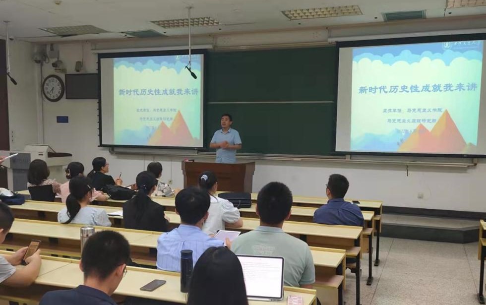 依托2021-2022第一学年开设的“习近平新时代中国特色社会主义思想概论”“马克思主义基本原理”“中国近现代史纲要”等3门本科生思政课开展“新时代历史性成就我来讲”主题教学活动。